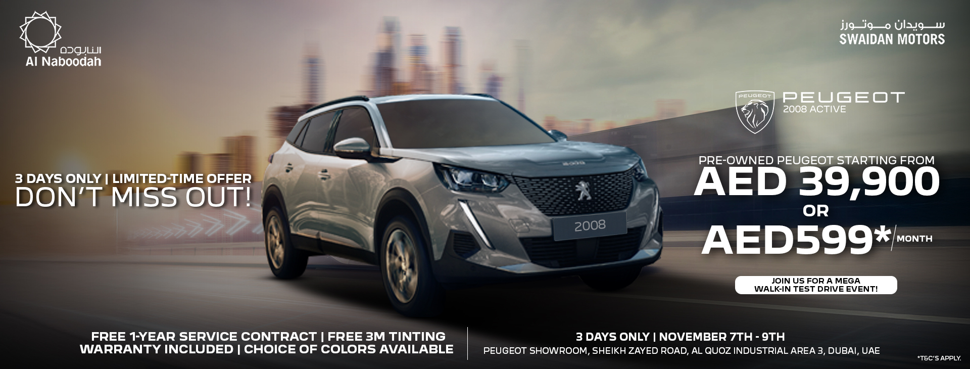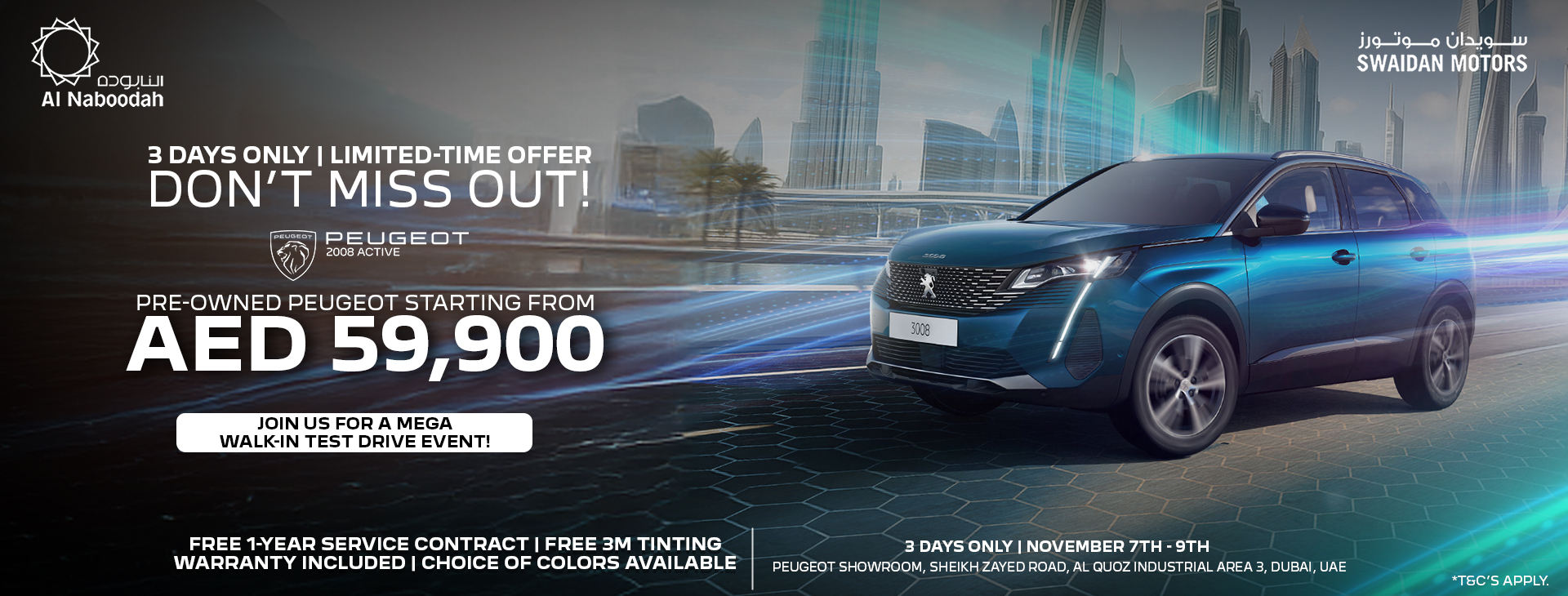 • Al Quoz Industrial Area 1 Monday to Saturday – 10:00am to 07:00pm Sunday – Close +971 50 622 4845 swaidan.motors@alnaboodah.com